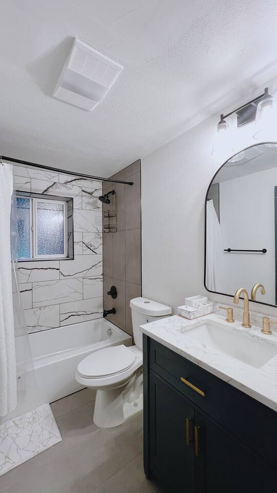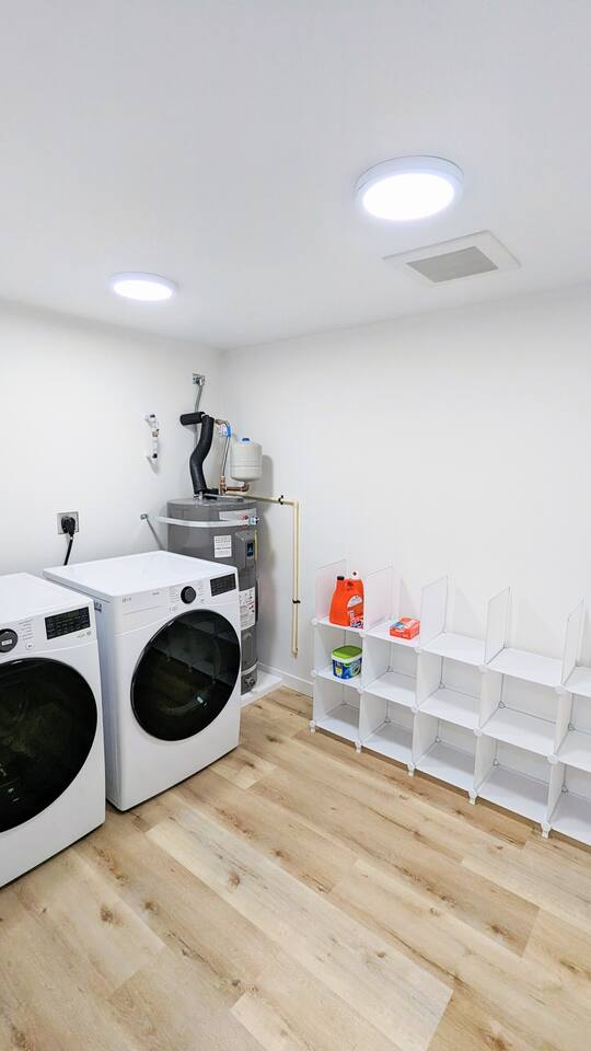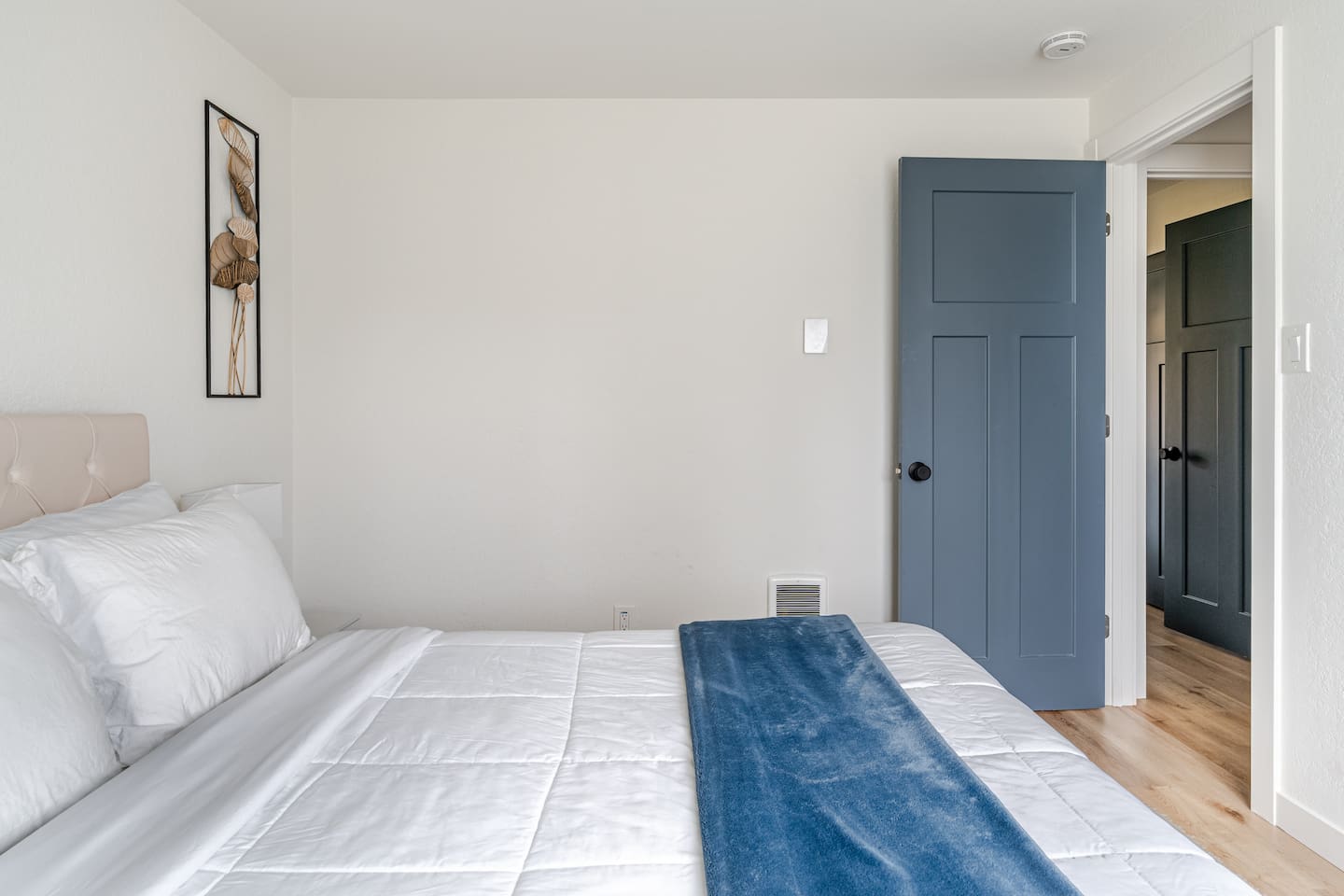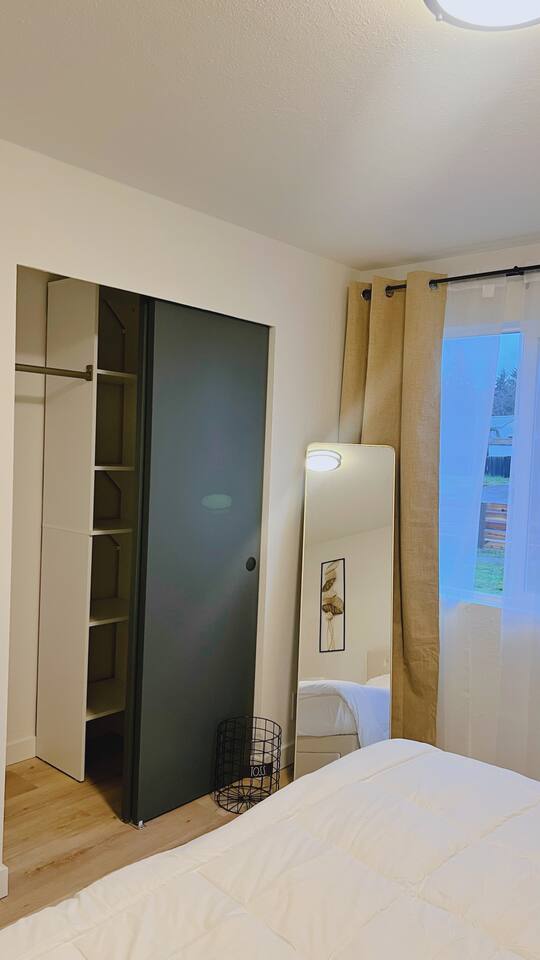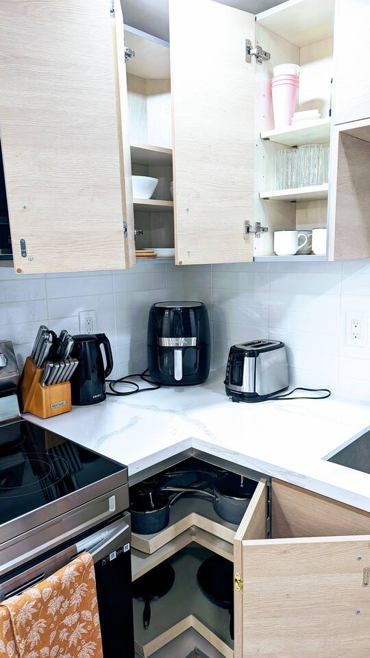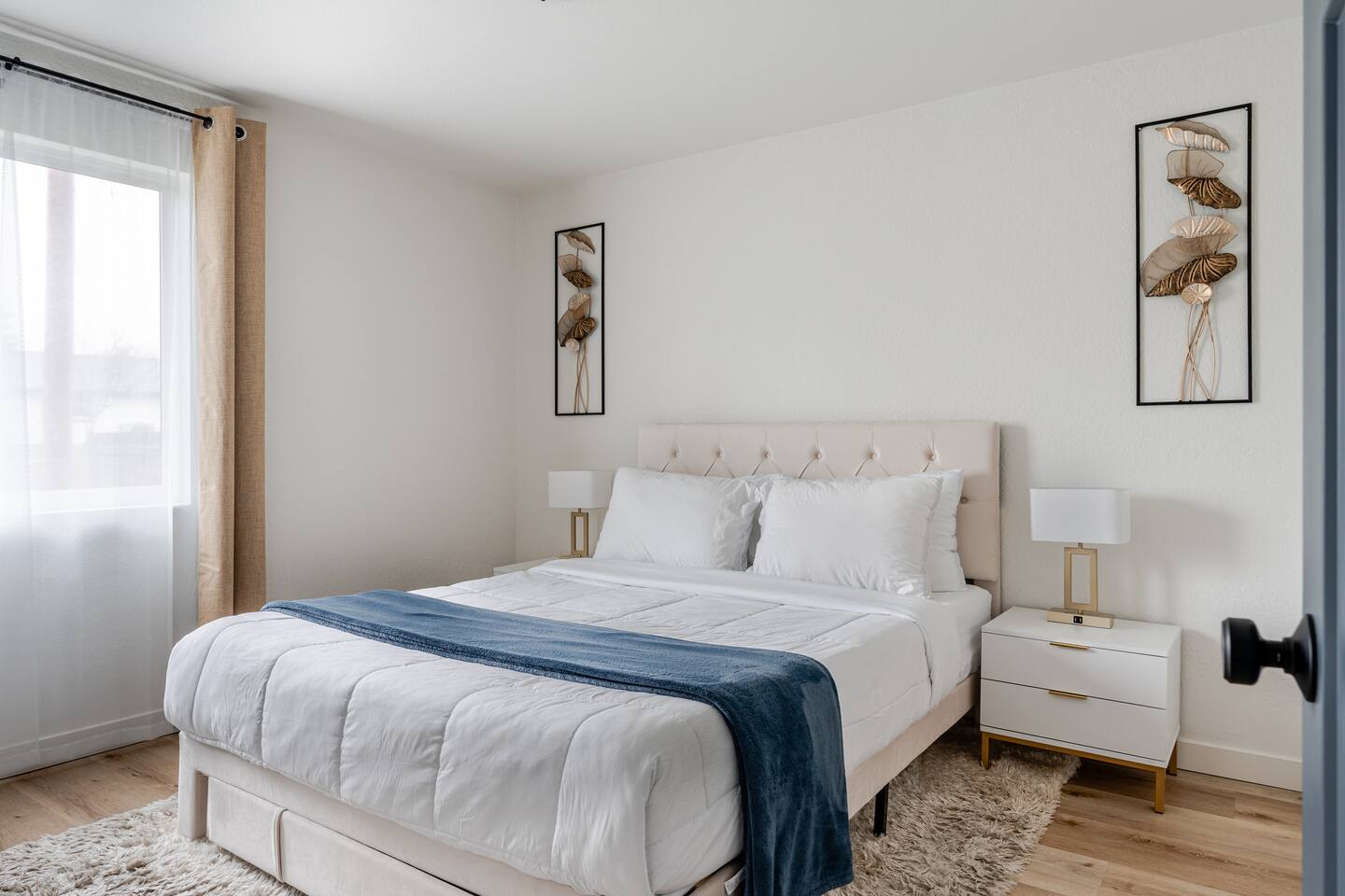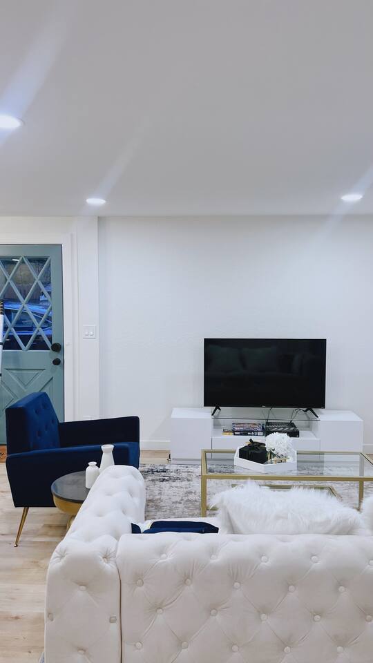 This house is perfect for couples travelling together, a family, traveling business or health care professionals wanting to have their own space. We are equipped with high-speed fiber optic internet for a seamless work from home experience. • Living room: This area includes a comfortable sofa, side chair, Roku smart TV (complimentary Netflix), board games. ✔ Comfortable sofa ✔ Roku smart TV (complimentary Netflix) ✔ Comfy side chair ✔ Coffee tables ✔ Board games ✔ Air purifier • Kitchen: Newly remodeled kitchen has a large quartz counter with stools and dining table that would fit 4 people comfortably. ✔ Microwave / Stove / Oven ✔ Refrigerator / Freezer ✔ Dishwasher ✔ Coffee machine / French press ✔ Toaster ✔ Kettle ✔ Coffee, tea, creamer & sugar ✔ Silverware ✔ Pots & Pans ✔ Basic spices ✔ First Aid kits Perishable items such as cheese, butter, ketchup, etc. are not provided. • Bedroom: You'll feel like you're sleeping on a cloud in both queen memory foam mattress. Both bedroom windows have blackout curtains. ✔ Queen-Size Beds with Pillows, Linens and Sheets ✔ Closets with Hangers and Shelves ✔ Nightstands with Reading Lamps and USB ports ✔ Blackout curtains ✔ Iron and ironing board • Bathroom: Newly remodeled bathroom, quartz sink. ✔ Essential Toiletries ✔ Shower gel and shampoo ✔ Hair Dryer ✔ Feminine products ✔ Extra toothbrushes and razor • Laundry: a laundry room with washer and dryer in the home ✔ Laundry detergent ✔ Dryer sheets • Heating: The home is equipped with electric wall heaters with smart thermostats. • Outdoor: Plenty of space in the front and back yard. 8 minutes' walk away is a gorgeous park with playground, playfield, basketball and tennis court.