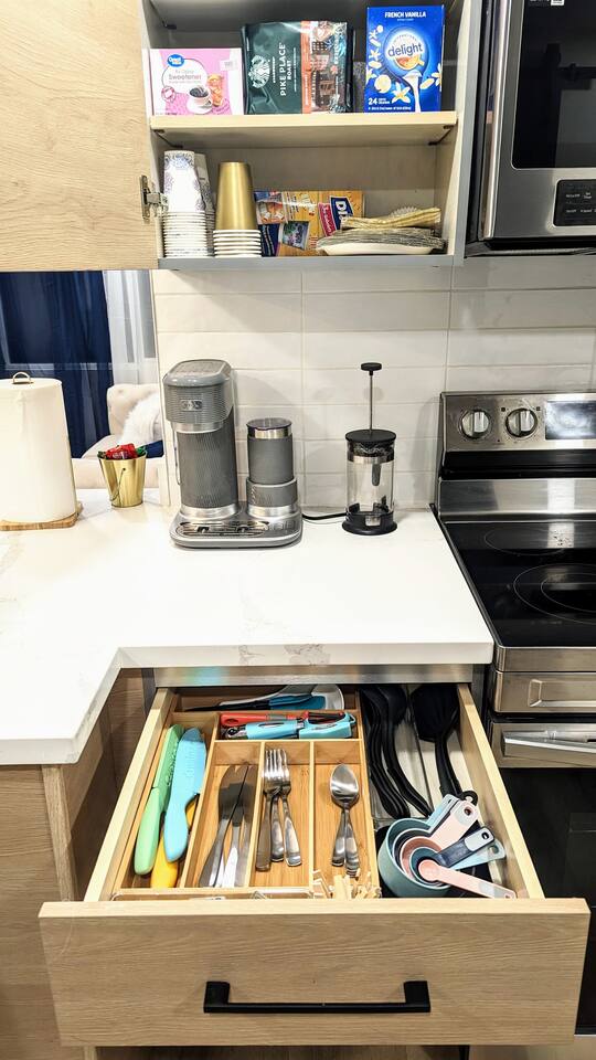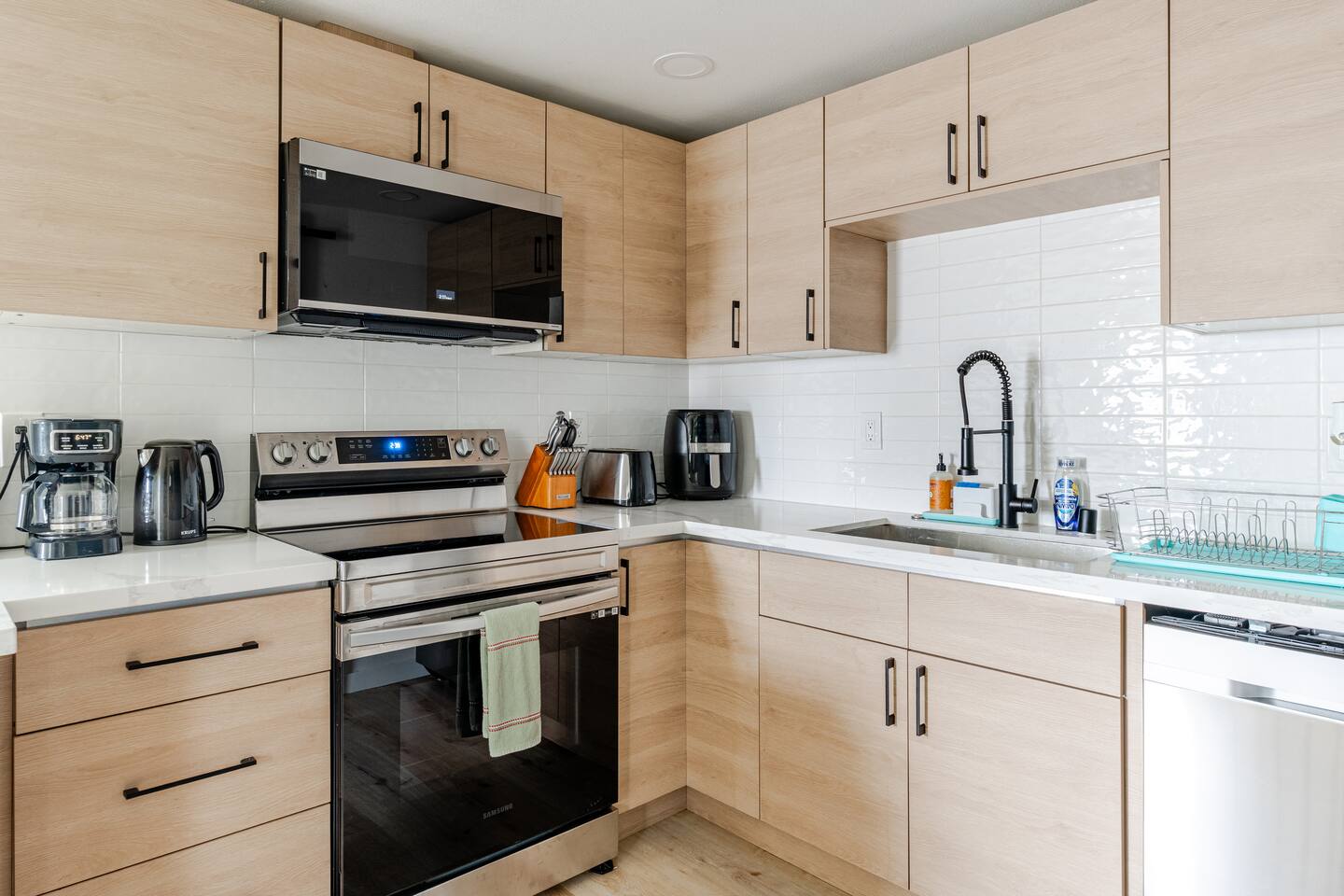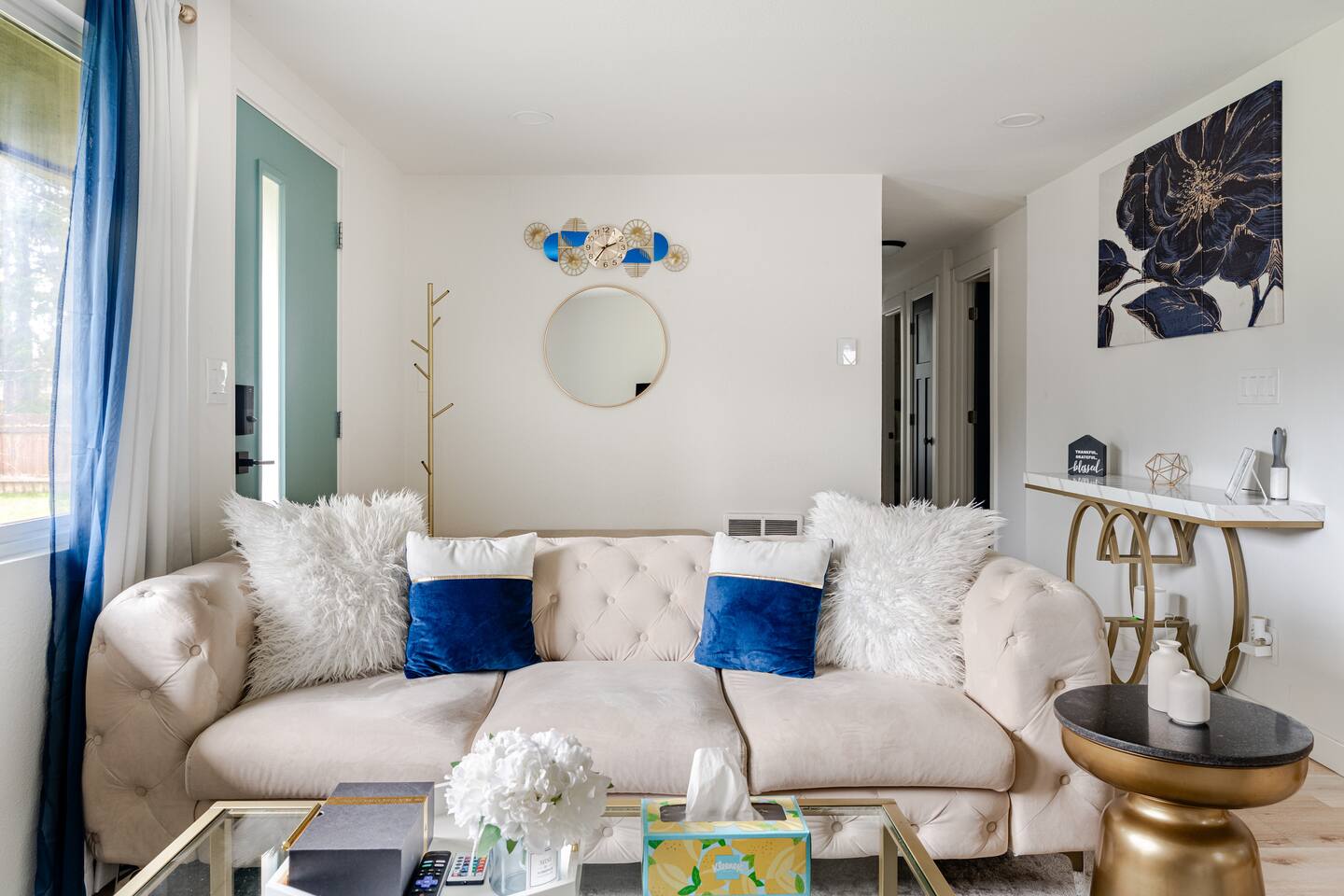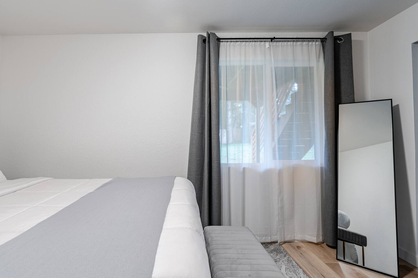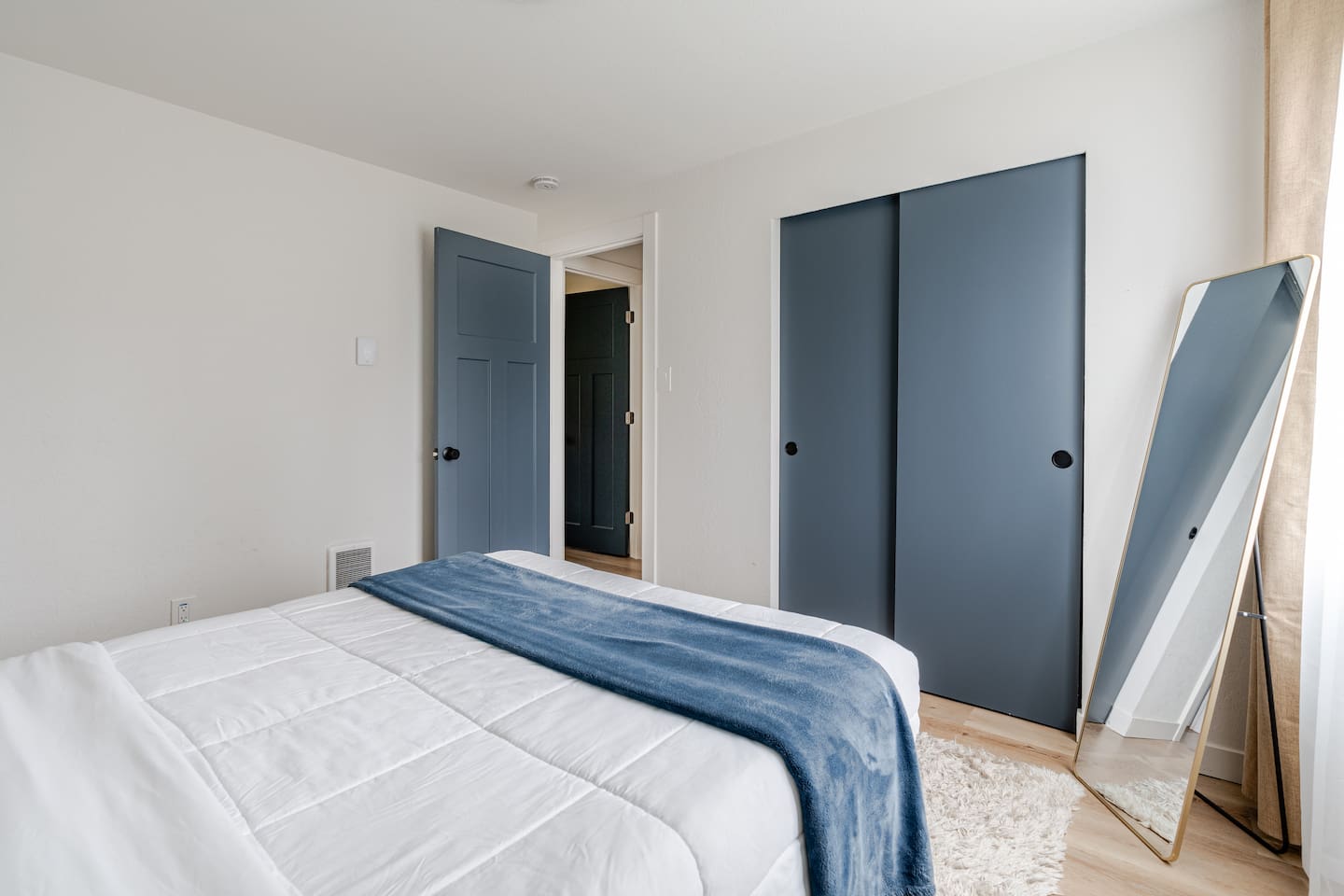 This house is perfect for couples travelling together, a family, traveling business or health care professionals wanting to have their own space. We are equipped with high-speed fiber optic internet for a seamless work from home experience. • Living room: This area includes a comfortable sofa, side chair, Roku smart TV (complimentary Netflix), board games. ✔ Comfortable sofa ✔ Roku smart TV (complimentary Netflix) ✔ Comfy side chair ✔ Coffee tables ✔ Board games ✔ Air purifier • Kitchen: Newly remodeled kitchen has a large quartz counter with stools and dining table that would fit 4 people comfortably. ✔ Microwave / Stove / Oven ✔ Refrigerator / Freezer ✔ Dishwasher ✔ Coffee machine / French press ✔ Toaster ✔ Kettle ✔ Coffee, tea, creamer & sugar ✔ Silverware ✔ Pots & Pans ✔ Basic spices ✔ First Aid kits Perishable items such as cheese, butter, ketchup, etc. are not provided. • Bedroom: You'll feel like you're sleeping on a cloud in both queen memory foam mattress. Both bedroom windows have blackout curtains. ✔ Queen-Size Beds with Pillows, Linens and Sheets ✔ Closets with Hangers and Shelves ✔ Nightstands with Reading Lamps and USB ports ✔ Blackout curtains ✔ Iron and ironing board • Bathroom: Newly remodeled bathroom, quartz sink. ✔ Essential Toiletries ✔ Shower gel and shampoo ✔ Hair Dryer ✔ Feminine products ✔ Extra toothbrushes and razor • Laundry: a laundry room with washer and dryer in the home ✔ Laundry detergent ✔ Dryer sheets • Heating: The home is equipped with electric wall heaters with smart thermostats. • Outdoor: Plenty of space in the front and back yard. 8 minutes' walk away is a gorgeous park with playground, playfield, basketball and tennis court.