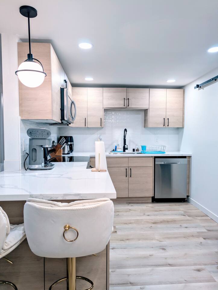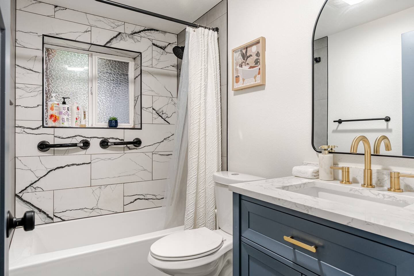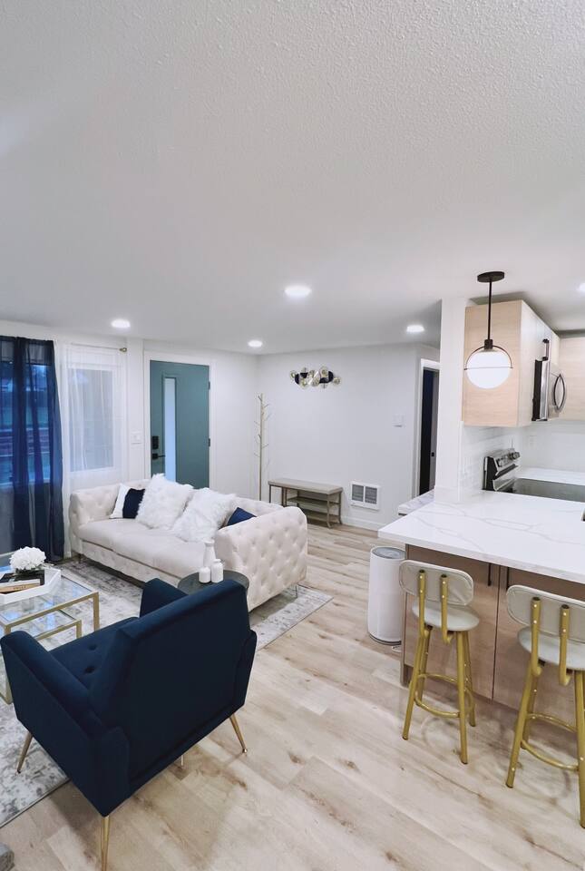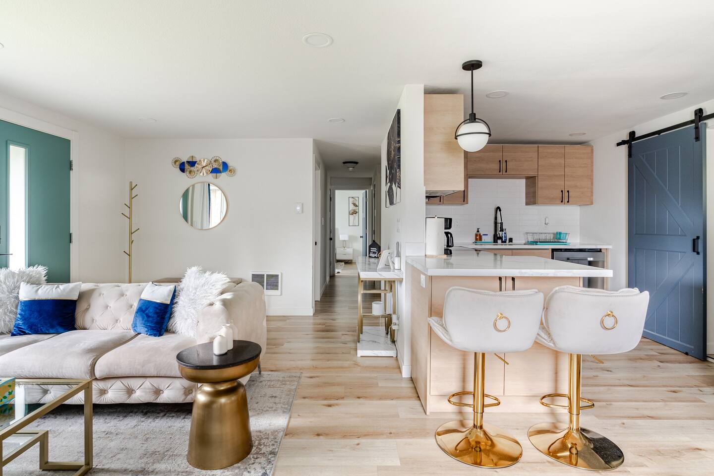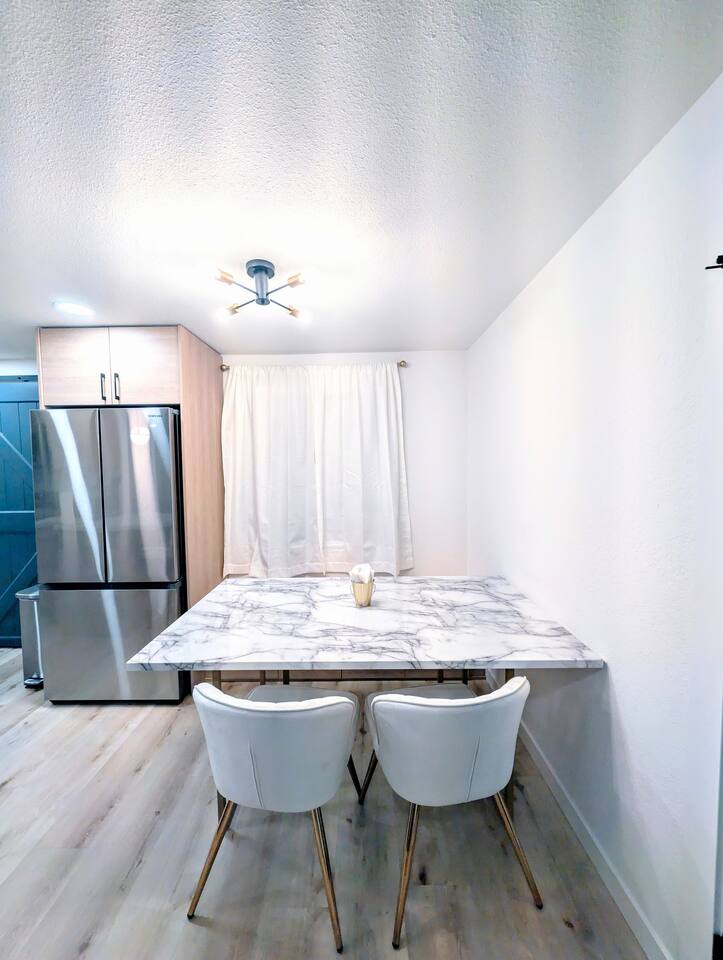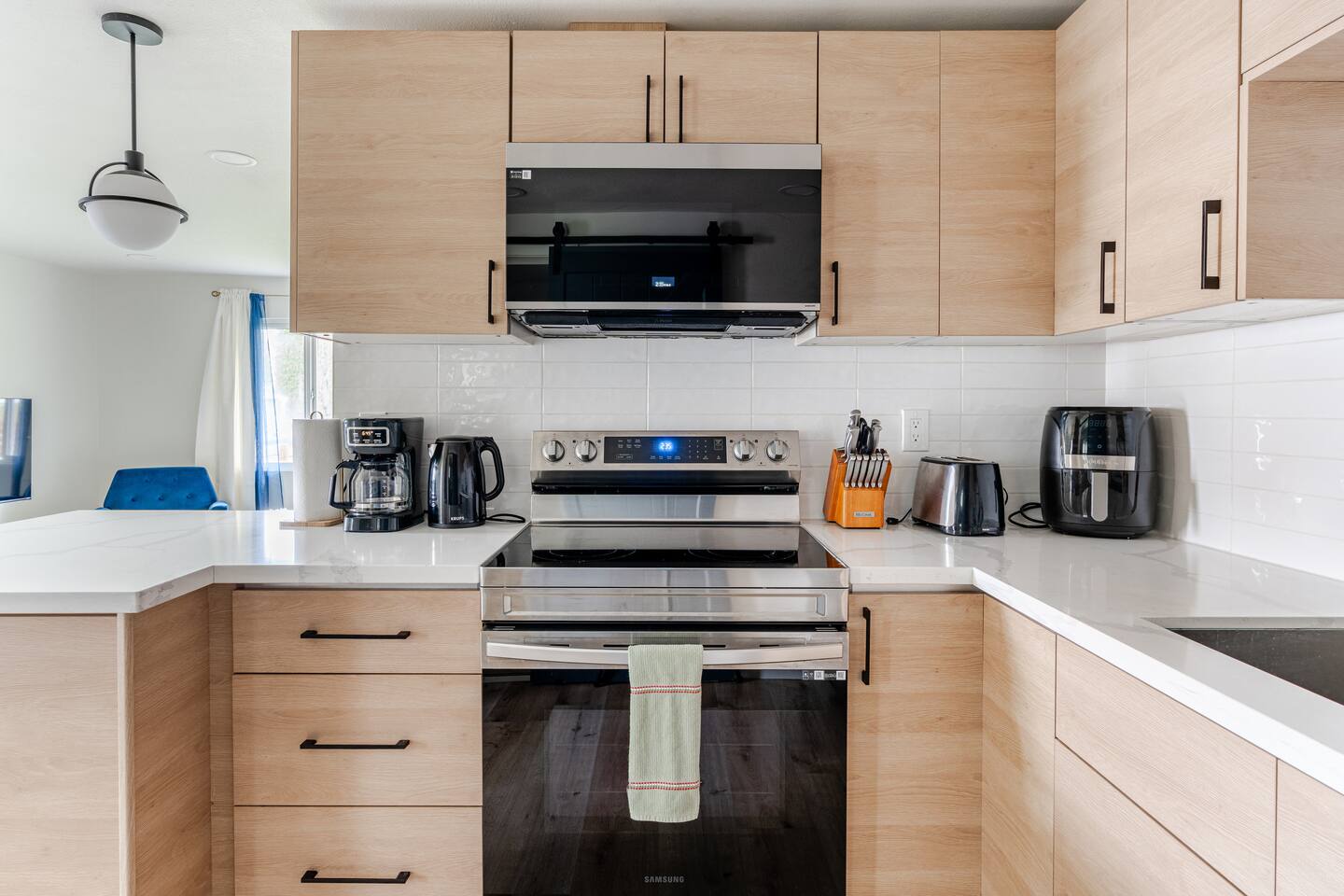 This house is perfect for couples travelling together, a family, traveling business or health care professionals wanting to have their own space. We are equipped with high-speed fiber optic internet for a seamless work from home experience. • Living room: This area includes a comfortable sofa, side chair, Roku smart TV (complimentary Netflix), board games. ✔ Comfortable sofa ✔ Roku smart TV (complimentary Netflix) ✔ Comfy side chair ✔ Coffee tables ✔ Board games ✔ Air purifier • Kitchen: Newly remodeled kitchen has a large quartz counter with stools and dining table that would fit 4 people comfortably. ✔ Microwave / Stove / Oven ✔ Refrigerator / Freezer ✔ Dishwasher ✔ Coffee machine / French press ✔ Toaster ✔ Kettle ✔ Coffee, tea, creamer & sugar ✔ Silverware ✔ Pots & Pans ✔ Basic spices ✔ First Aid kits Perishable items such as cheese, butter, ketchup, etc. are not provided. • Bedroom: You'll feel like you're sleeping on a cloud in both queen memory foam mattress. Both bedroom windows have blackout curtains. ✔ Queen-Size Beds with Pillows, Linens and Sheets ✔ Closets with Hangers and Shelves ✔ Nightstands with Reading Lamps and USB ports ✔ Blackout curtains ✔ Iron and ironing board • Bathroom: Newly remodeled bathroom, quartz sink. ✔ Essential Toiletries ✔ Shower gel and shampoo ✔ Hair Dryer ✔ Feminine products ✔ Extra toothbrushes and razor • Laundry: a laundry room with washer and dryer in the home ✔ Laundry detergent ✔ Dryer sheets • Heating: The home is equipped with electric wall heaters with smart thermostats. • Outdoor: Plenty of space in the front and back yard. 8 minutes' walk away is a gorgeous park with playground, playfield, basketball and tennis court.