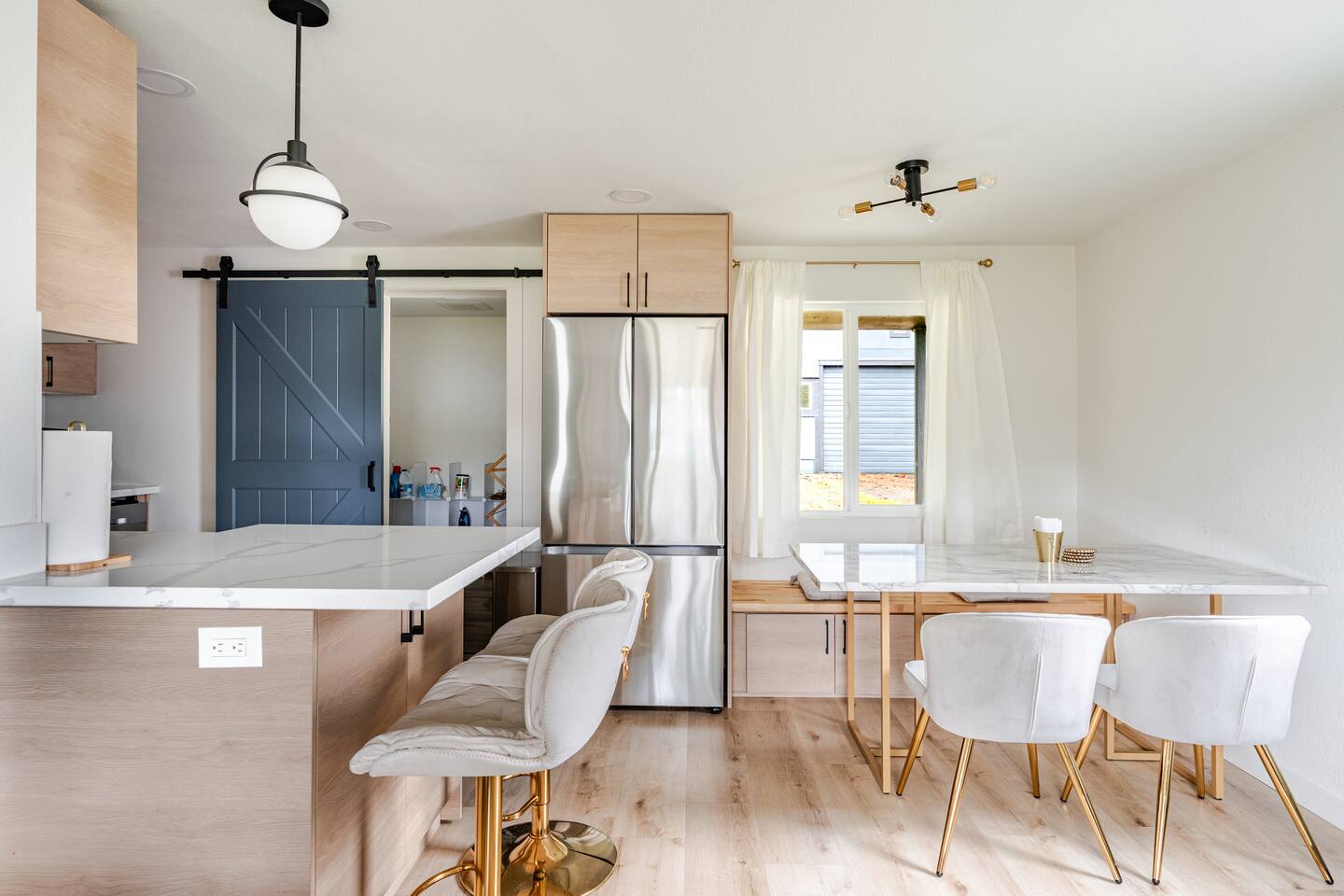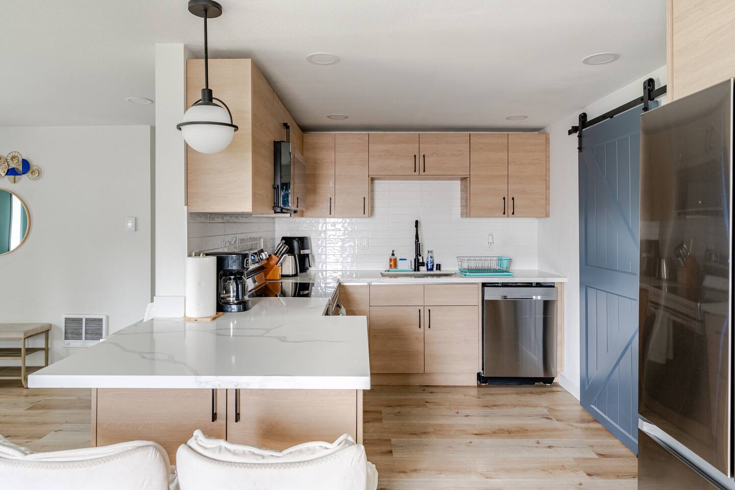 This is a remodeled ground level two-bedroom guests suite with a separate entry in a residential home located in a safe and quiet neighborhood The stylish design is accompanied by modern amenities spreading across entire space. Enjoy local cafes, bakeries, restaurants, breweries all within walking distance Easy access to the freeways to Seattle, Kirkland and Bellevue. This is 13 miles from downtown Seattle, with transit center 0.8 miles away Upstairs will be occasionally occupied by the host